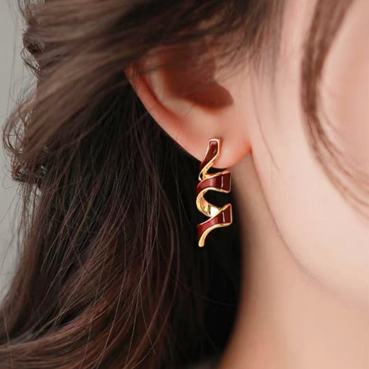 14K Gold-Plated Elegant Water Drop Oil Spiral Earrings