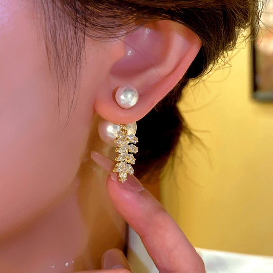 14K Gold-Plated Elegant White Pearl Zircon Tassel Threader Earrings