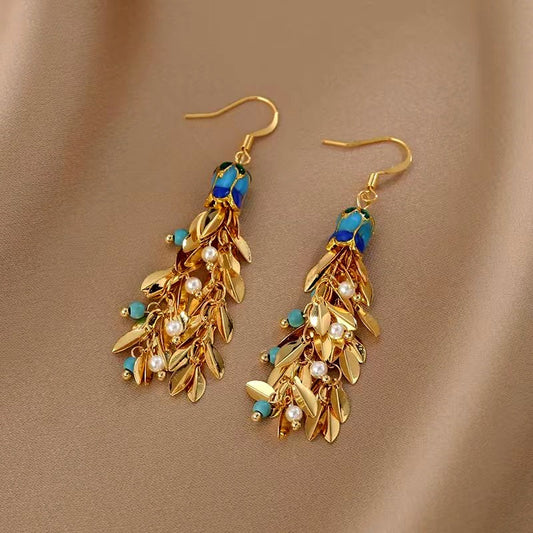 14K Gold-Plated Elegant Wheat Ear Pearl Tassel Earrings