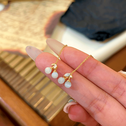 14K Gold-plated Elegant White Cherry Threader Earrings