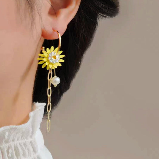 14K Gold-Plated Elegant Yellow Flower Earrings