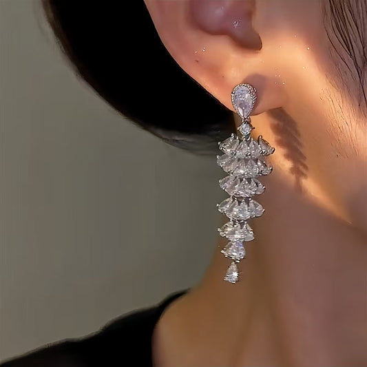 14K Gold-Plated Elegant Zircon Ball Tassel Earrings