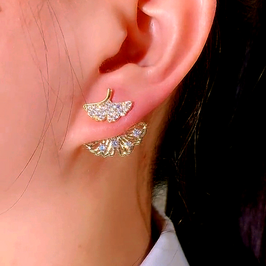 14K Gold-Plated Elegant Zircon Apricot Leaf Earrings