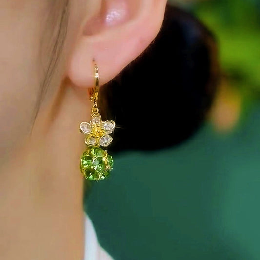14K Gold-plated Elegant Zircon Ball Flower Earrings