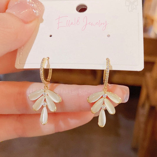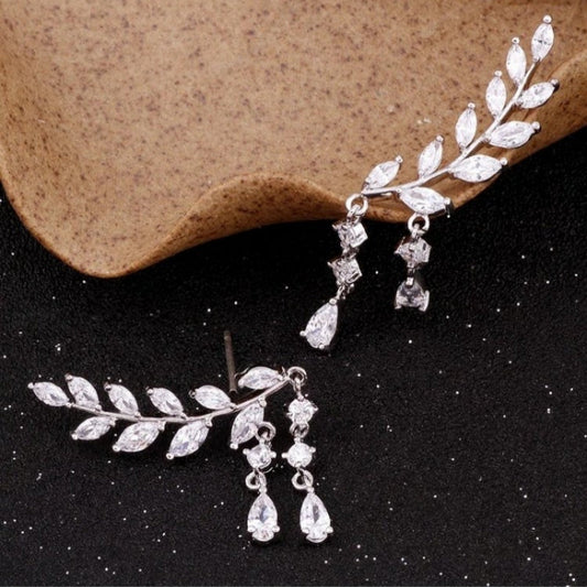 14K Gold Plated Zircon Leaf Earrings