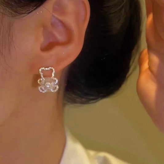 14K Gold Plated Zircon Rotating Bear Earrings