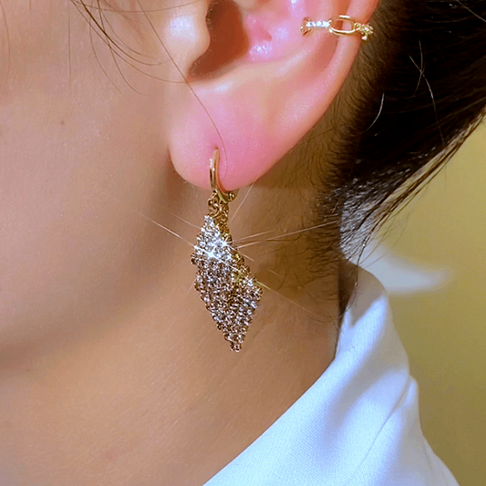 14K Gold-Plated Elegant Zircon Diamond Tassel Earrings