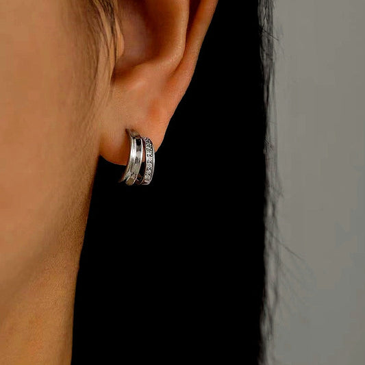 14k Gold-Plated Elegant Zircon Double-Layer Hoop Earrings