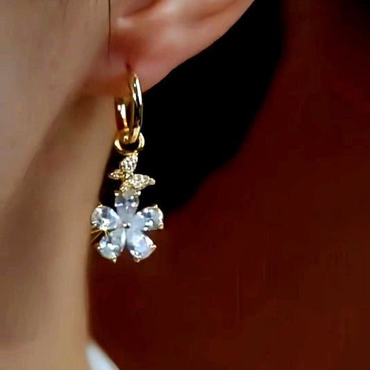14K Gold-Plated Elegant Zircon Flower And Butterfly Earrings