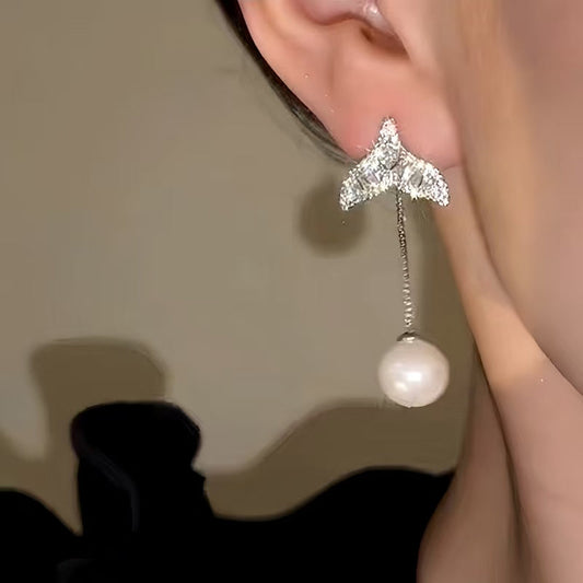 14K Gold-Plated Elegant Zircon Fishtail Pearl Earrings