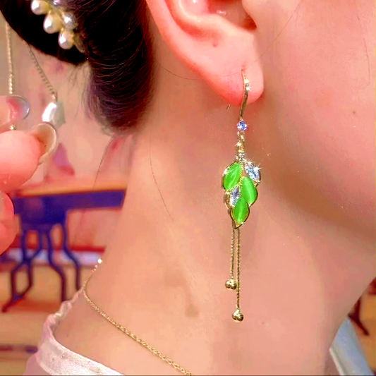 14K Gold-Plated Elegant Zircon Leaf Tassel Earrings
