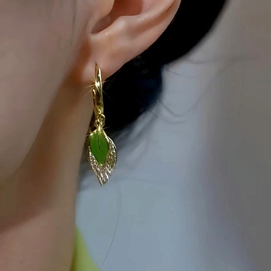 14K Gold-plated Elegant Zircon Leaf Earrings