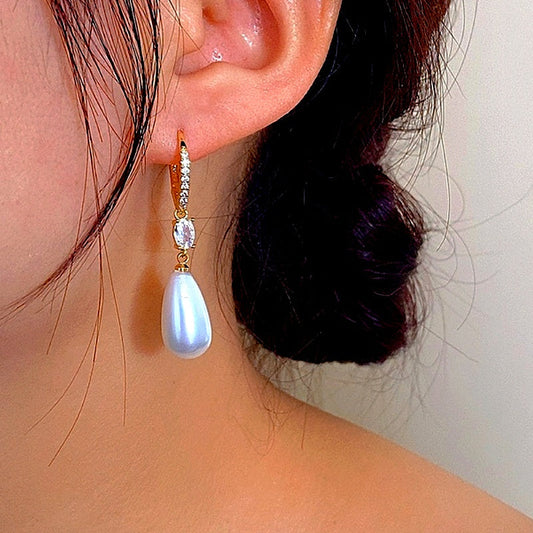 14K Gold-Plated Elegant Zircon Pearl Earrings