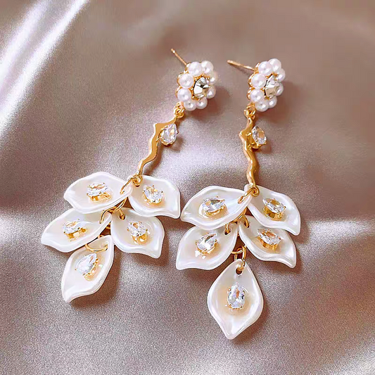 14K Gold-Plated Elegant Zircon Pearl Flower Earrings