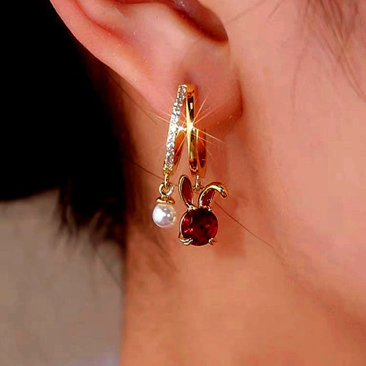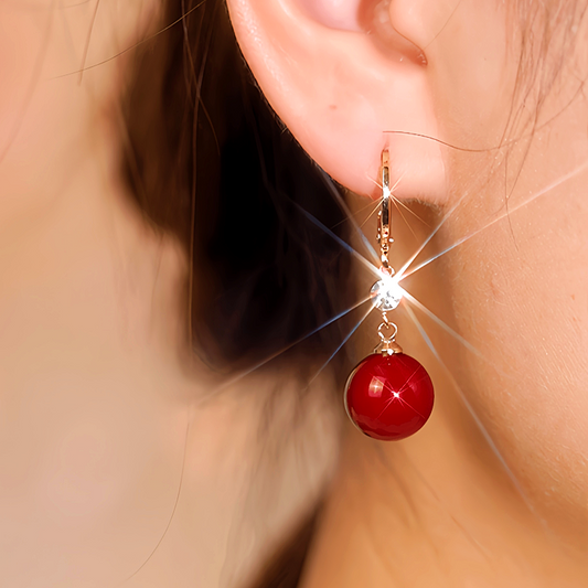 14K Gold-Plated Elegant Zircon Red Pearl Ear Hooks