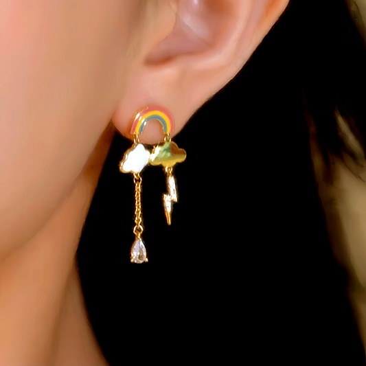 14K Gold-Plated Elegant Zircon Rainbow Cloud Earrings