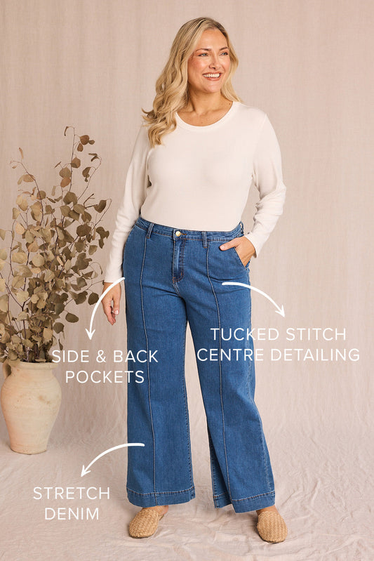 Adrift Denim Wide Leg Jeans in Mid Wash