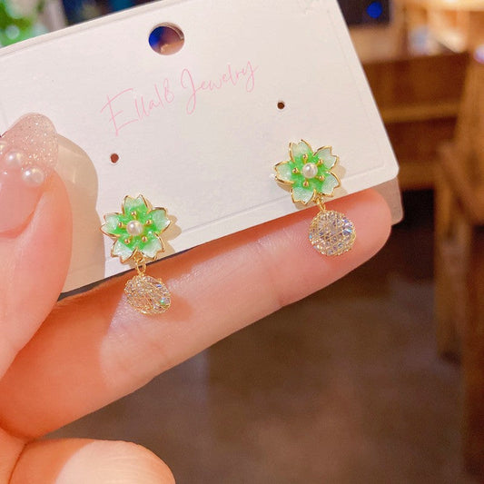14K Gold-Plated Niche Design Pink And Green Flower Earrings