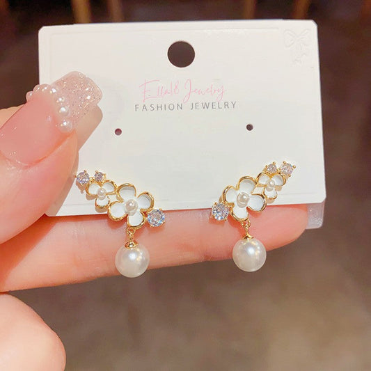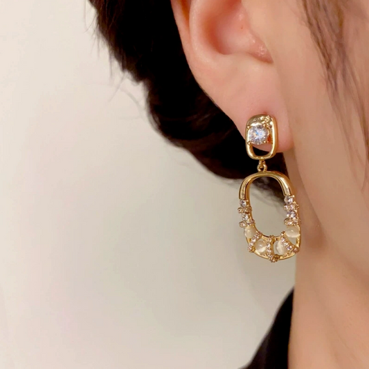 14K Gold-Plated Elegant Zircon Pearl Earrings