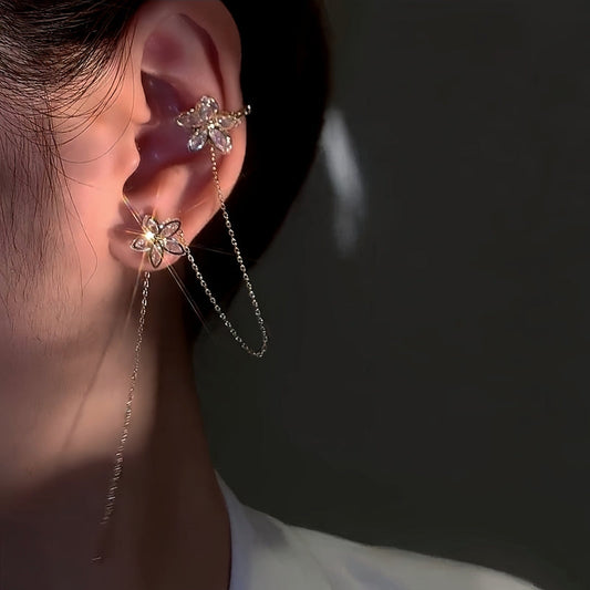 14K Gold-plated Zircon Flower Ear Clip Earrings ( 1 PCS )