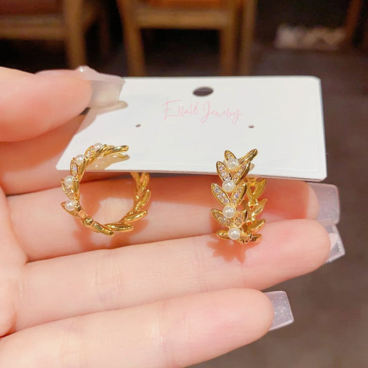 14K Gold-plated Zircon Wheat Pearl Earrings