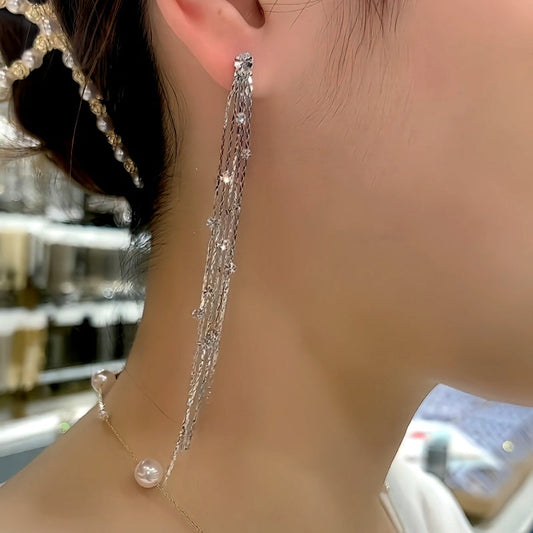 14K Gold-Plated Zircon Front And Back Tassel Earrings
