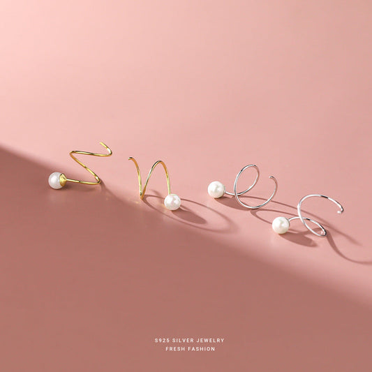 Sterling Silver Simple Glossy Wave Stud Earrings