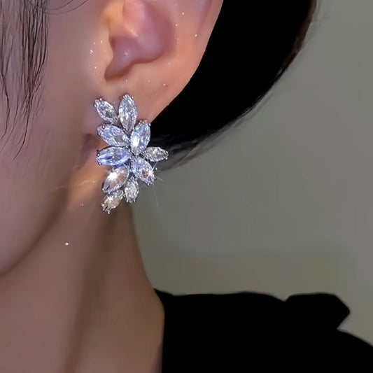 14K Gold-Plated Elegant Zircon Leaf Earrings