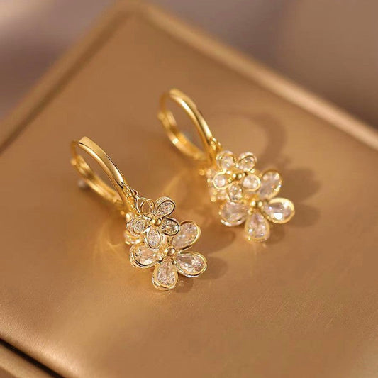 14K Gold-plated Zircon Flower Earrings