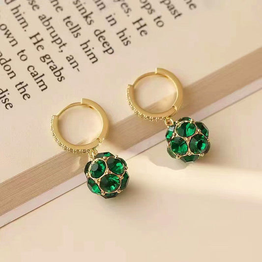 14K Gold-plated Green Rhinestone Earrings