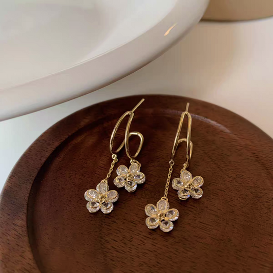 14K Gold-plated Crystal Flower Earrings