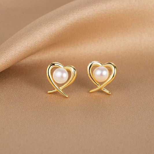 Silver Post Heart-Design Artificial Pearl Stud Earrings