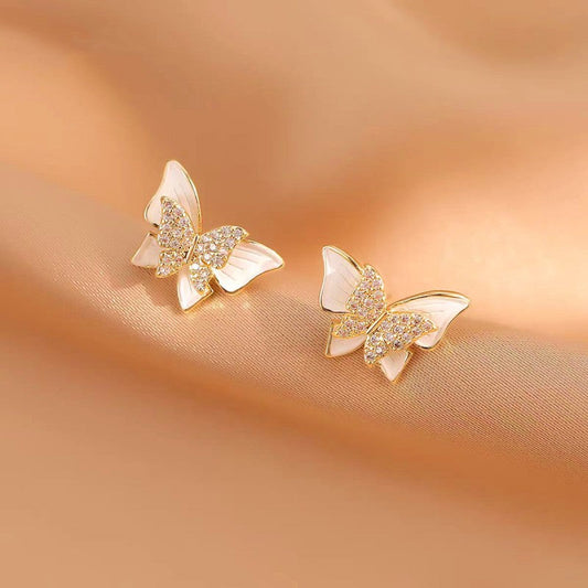 Silver Post Zircon Butterfly Earrings