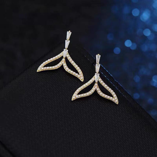 Silver Post Zircon Fishtail Earrings