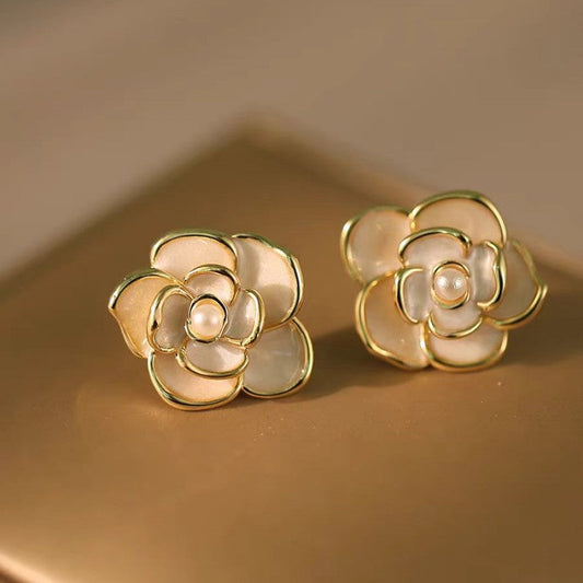 14K Gold-plated Square Artificial Bead Stud Earrings