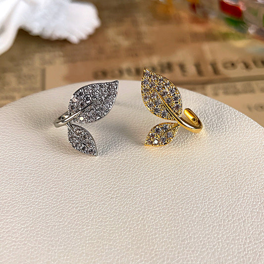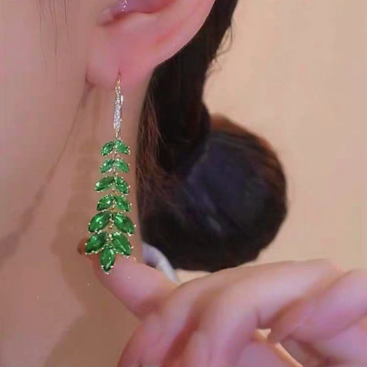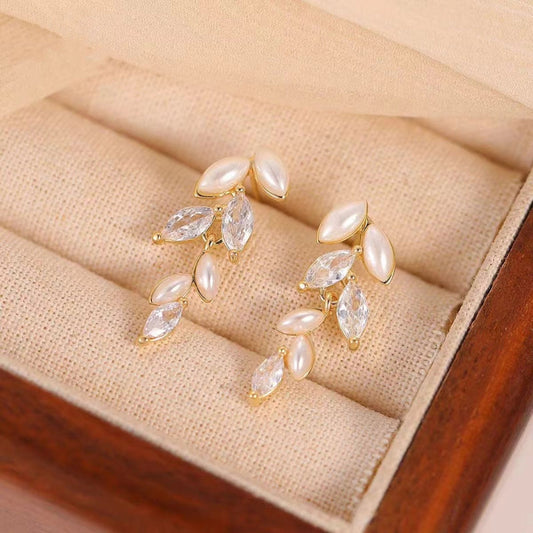 14K Gold-Plated Sparkling Zircon Leaf Earrings