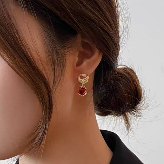 14K Gold-Plated Opal Swan Earrings