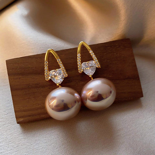 14K Gold-Plated Zircon Pink Pearl Earrings