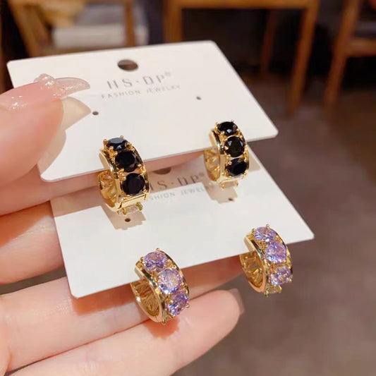 14K Gold-Plated Zircon Small Hoop Earrings