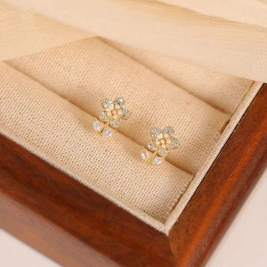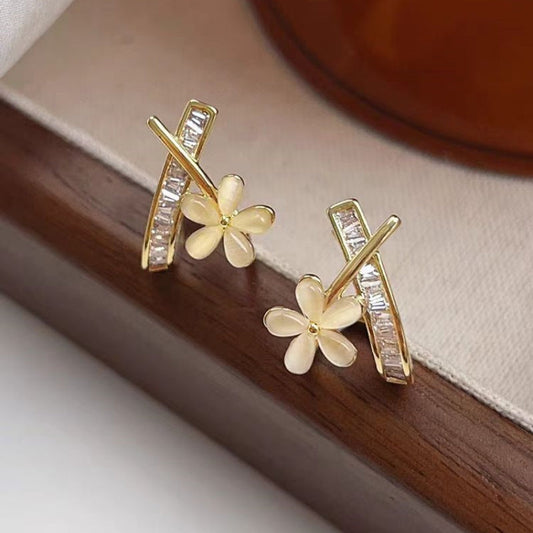 14K Gold-plated Zircon Crystal Flower Earrings