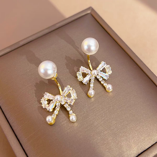 Silver Post Bow Pearl Earrings