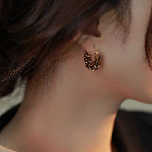 14K Gold-Plated Brown Resin Tiger Eye Stone Water Drop Hoop Earrings