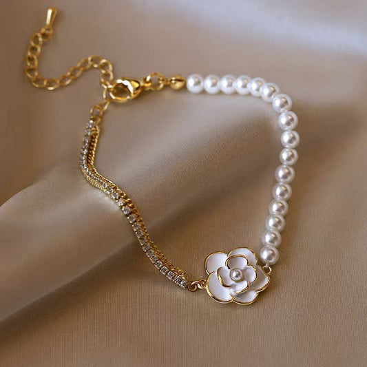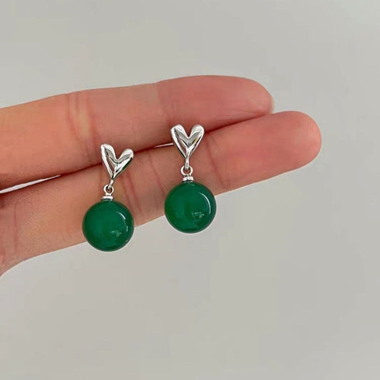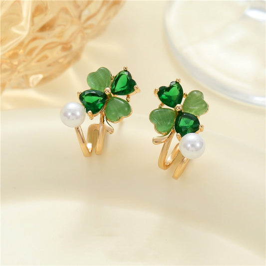 14K Gold-Plated Elegant Zircon Green Opal Four-Leaf Flower Studs