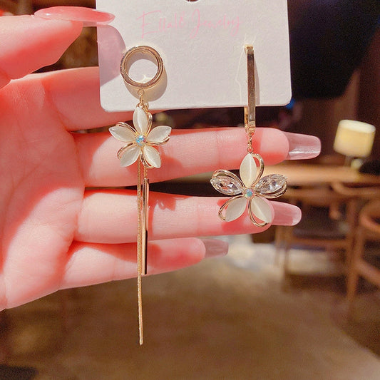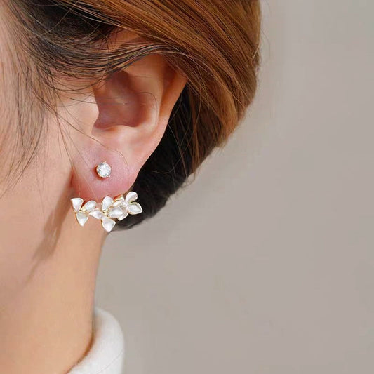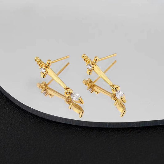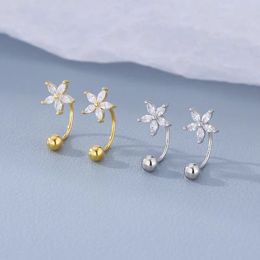 14K Gold-Plated Zircon Four-Leaf Flower Earrings