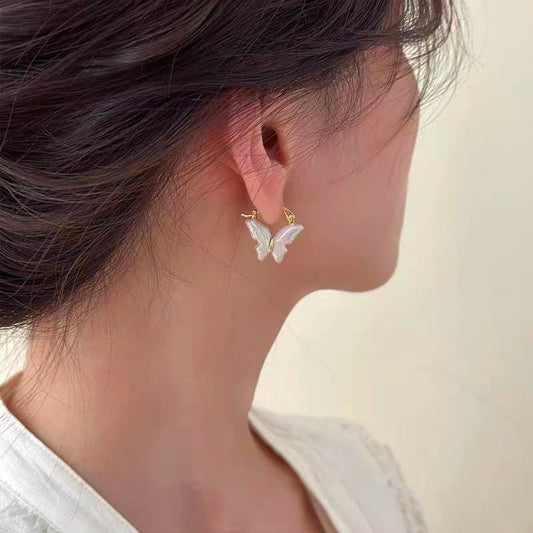 14K Gold-Plated Elegant Cream Butterfly Earrings