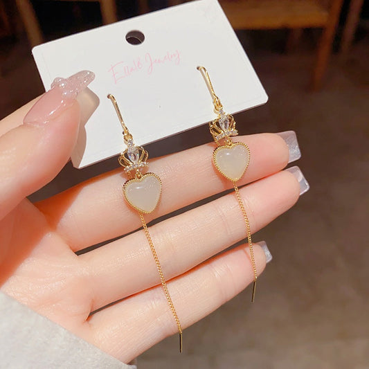 14K Gold-Plated Elegant Crown Heart Threader Earrings