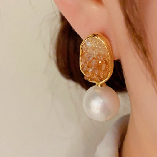 14K Gold-Plated Elegant Crystal Pearl Drop Earrings