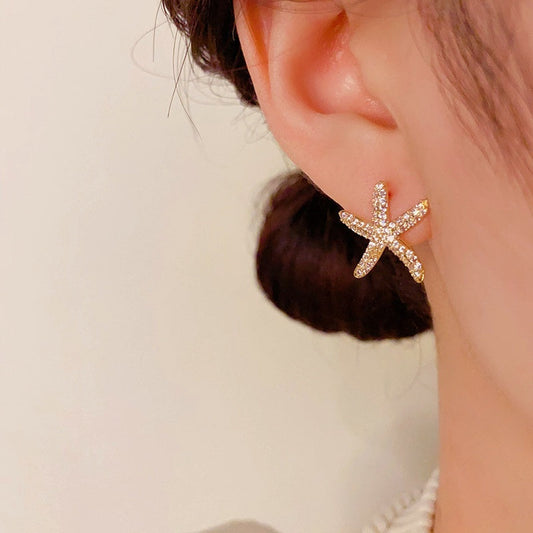 14K Gold-Plated Elegant Diamond Stafish Studs