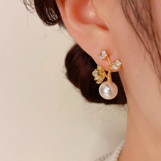 14K Gold-Plated Elegant Flower Pearl Earrings