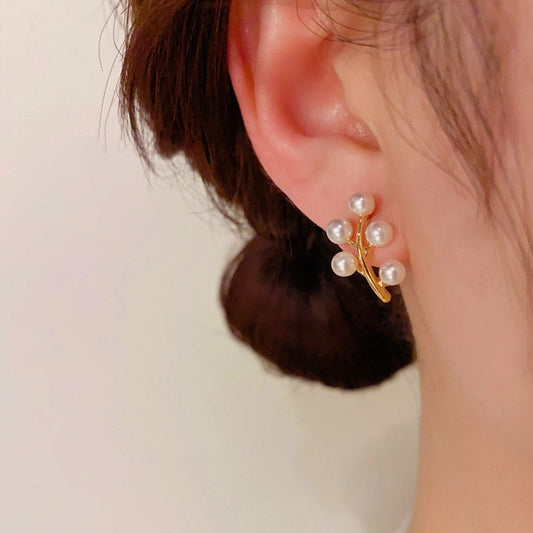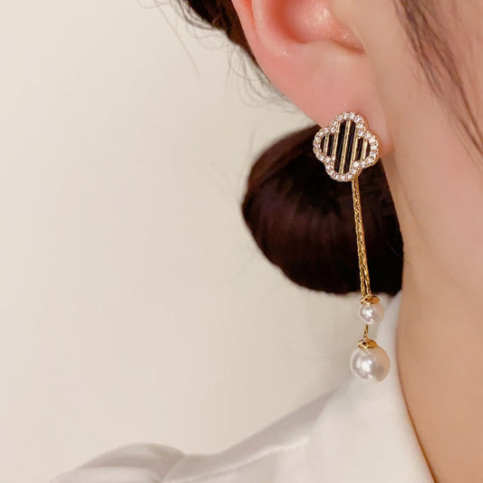 14K Gold-Plated Elegant Four-Leaf Flower Pearl Earrings